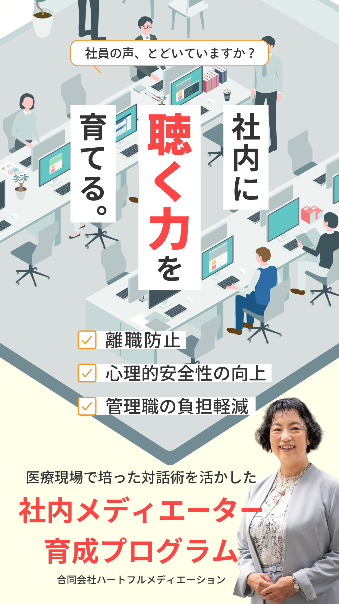 メディエーションは欧米では公的機関でも取り入れられている一方、日本ではほとんど知られていません。私は以前まで「医療メディエーター」として、病院・患者間の話し合いをサポートしてきました。これまでの経験の中で私は「メディエーションは病院に限らず、企業の人間関係にも役立つのではないか」と考え、その手法を広める活動を始めました。